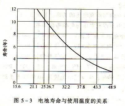 由圖5—3可見,溫度對(duì)電池的自然老化過程有很大影響。溫度上升,電池壽命下降。